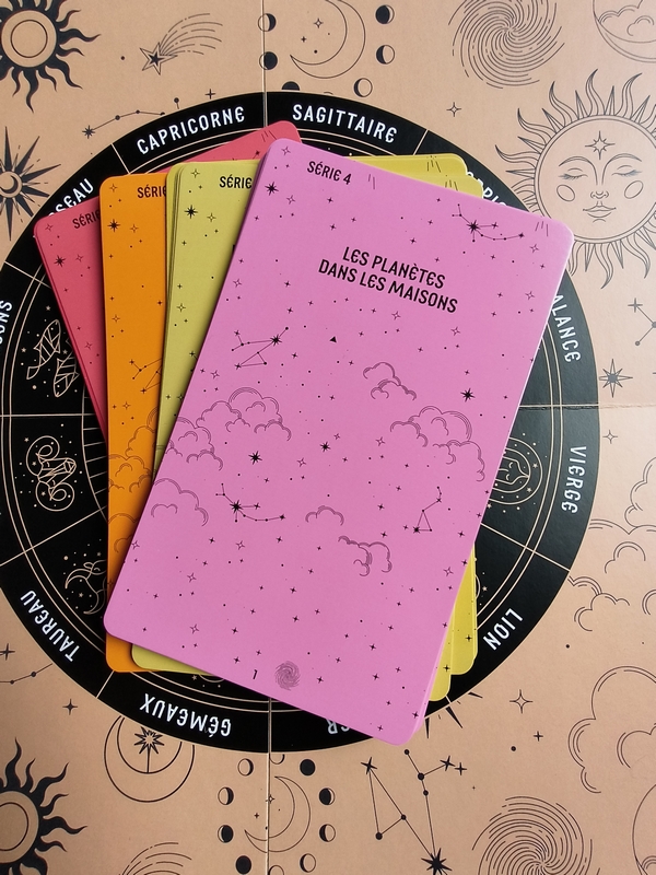 Dépliez le plateau et laissez-vous guider, pas à pas. Grâce aux fiches, vous allez apprendre à placer correctement tous les éléments sur le cercle zodiacal, les planètes à l’extérieur et les maisons à l’intérieur, le presse-papier au centre. Progressivement, vous découvrirez la signification des différentes positions des maisons, des planètes ou des astres, leurs interactions.